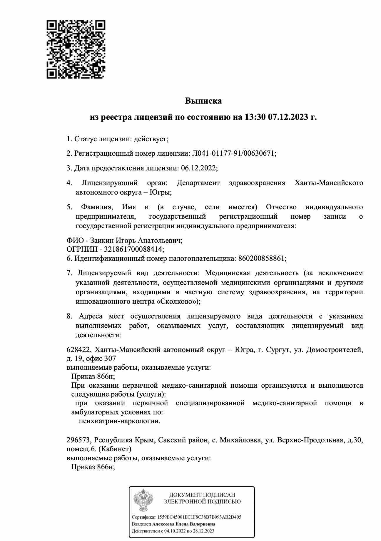 Дата предоставления лицензии: 06.12.2022