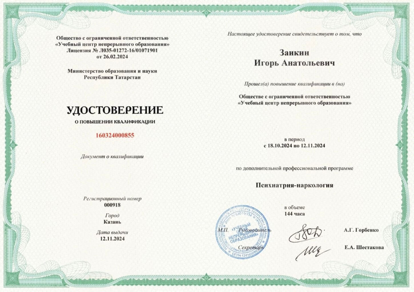 ЗАИКИН ИГОРЬ АНАТОЛЬЕВИЧ