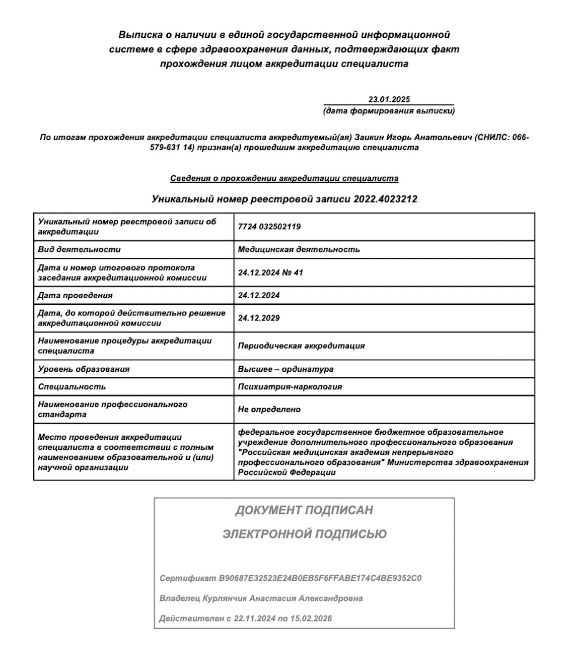Врач психиатр-нарколог с 35-ти летним стажем